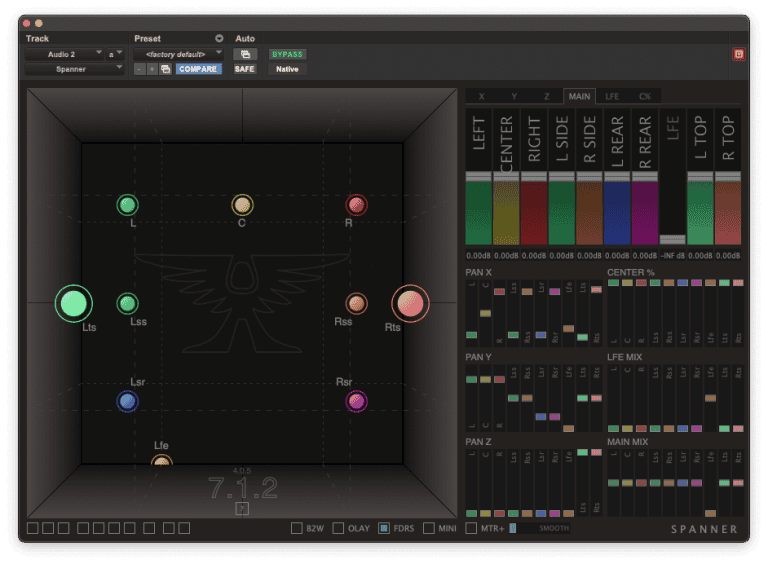 Spanner can upsize or downsize, to and from all common track formats, allowing you to actually ‘pan’ an LCR into the 7.0 mix bus, or temporarily send a 7.1 stem to a 5.1 output for monitoring.